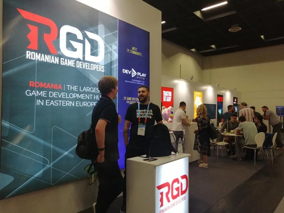 Romanian business booth: Amber, Tractor Set Go, Those Awesome Guys, AMC Studio, Whyttest
