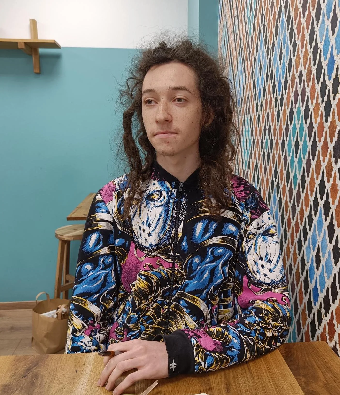 His favorite colors are green and purple. He has an affinity for clothes design and Jamaican culture, hence his, what most people would say, out-of-the-ordinary hairstyle.